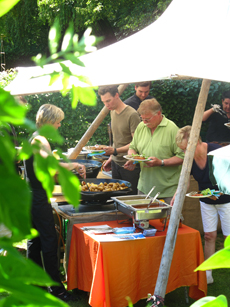 Auf Hochzeiten und anderen Festlichkeiten kocht unser erfahrenes Küchenteam an der frischen Luft oder in großen Räumlichkeiten. Das lädt nicht nur die Feiernden zum Plausch ein, sondern auch die Kommunikation mit unseren Köchen ist möglich.